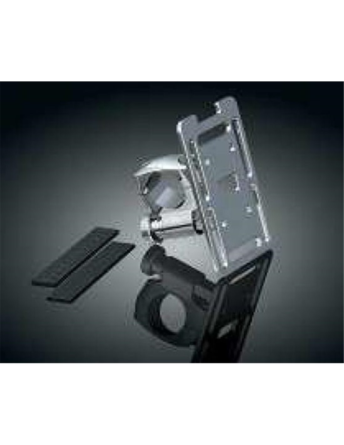 Fijación para teléfono móvil, MP3 o cualquier otro dispositivo directamente al manillar. Soporte de ajuste y desajuste rápido. En caso de no usarse, la abrazadera permanece en el manillar. Anclaje apto para correas y tornillos de fijación y correas de velcro.