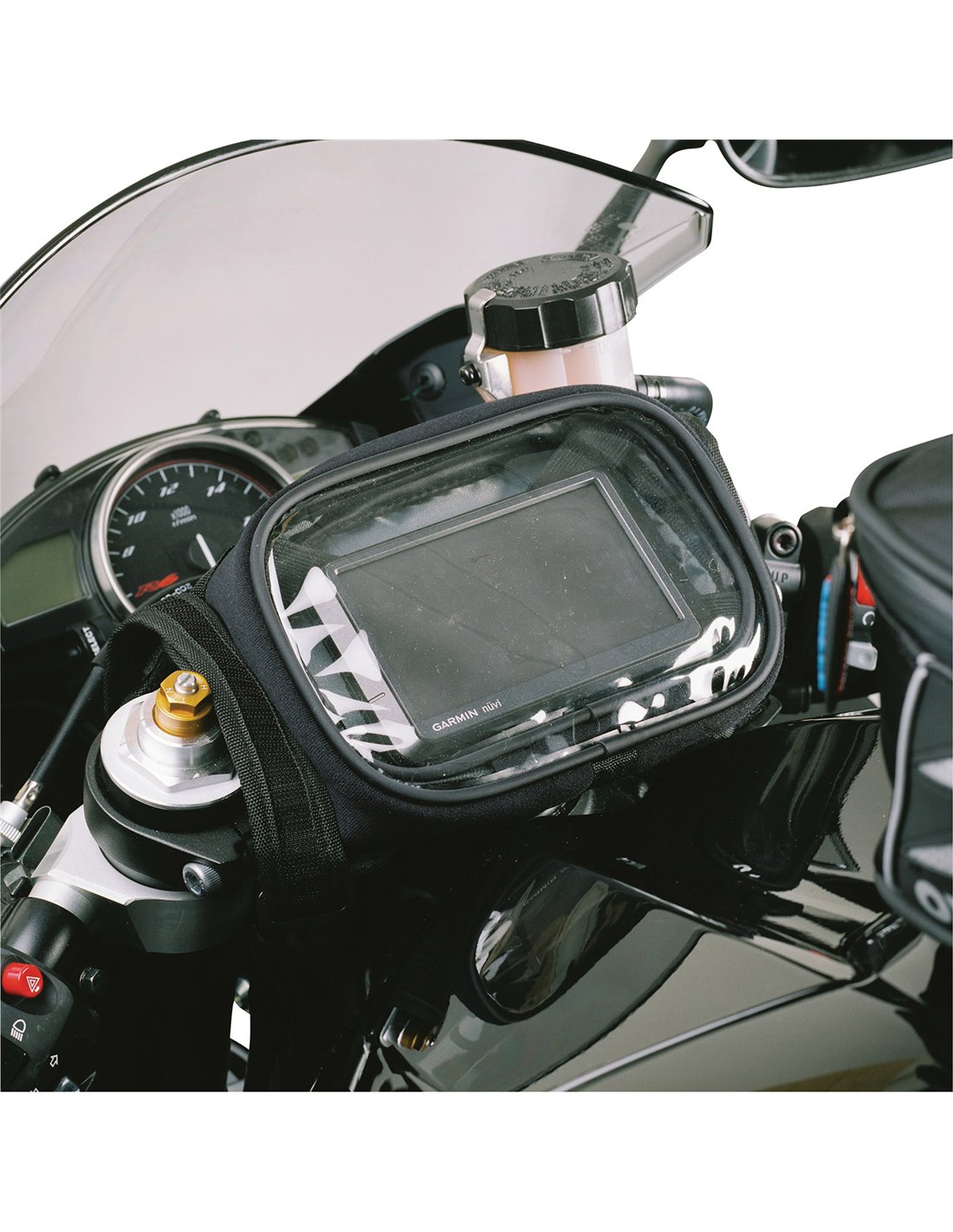Se sujeta a la motocicleta utilizando dos tiras de velcro que se pueden adaptar a cualquier tipo de manillar.