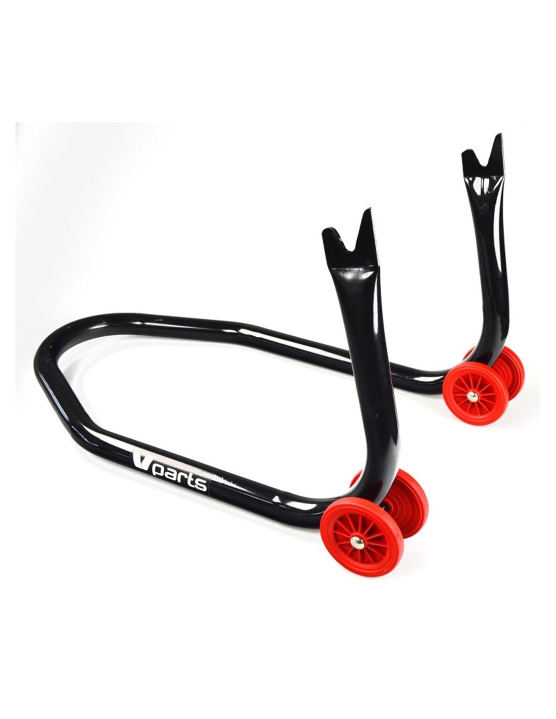 Gracias a este soporte elevador para levantar la rueda trasera con diábolos podremos fácilmente trabajar en todo aquello que nosotros queramos, como por ejemplo, limpiar y engrasar la cadena, cambiar la rueda, las pastillas de freno, equilibrar,…