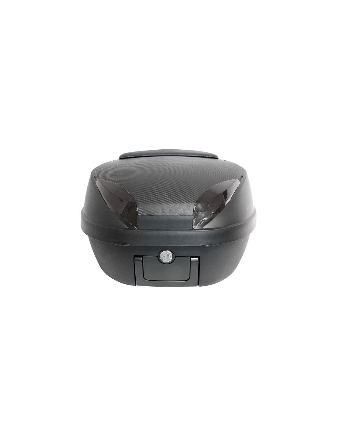 Maleta de moto barata trasera con tapa de imitación carbono + respaldo trasero + parrilla y tornillería.
