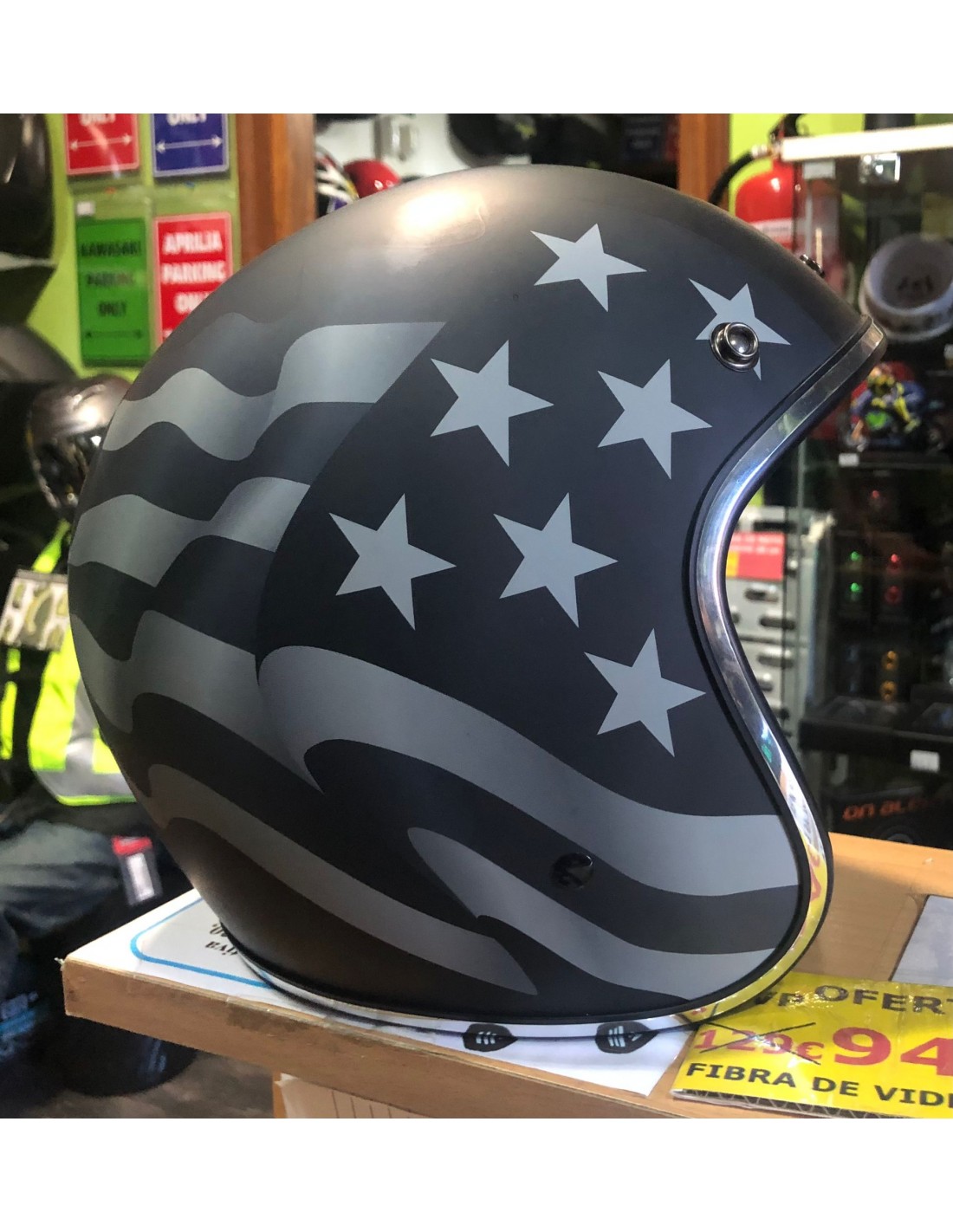 CASCO DE MOTO JET ESTRELLAS DE FIBRA DE VIDRIO