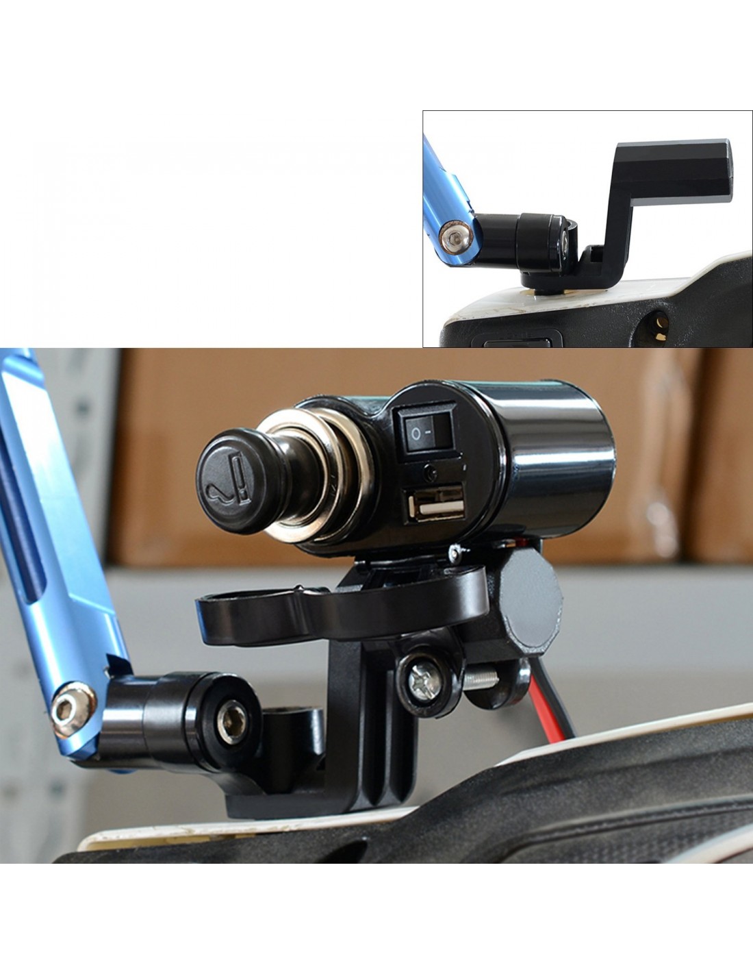 El soporte tiene un agujero de 10 mm perno que permite su instalación en muchos montajes tales como tornillos de espejo y u otros tornillos.