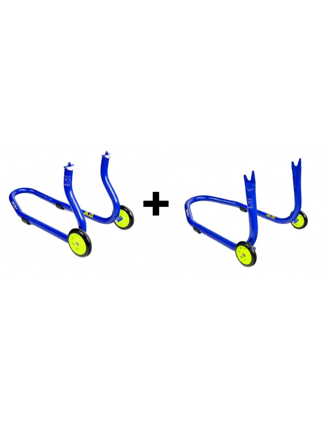 PACK DE CABALLETE DE MOTO DELANTERO PARA HORQUILLAS PERFORADAS + CABALLETE DE MOTO TRASERO PARA DIABOLOS