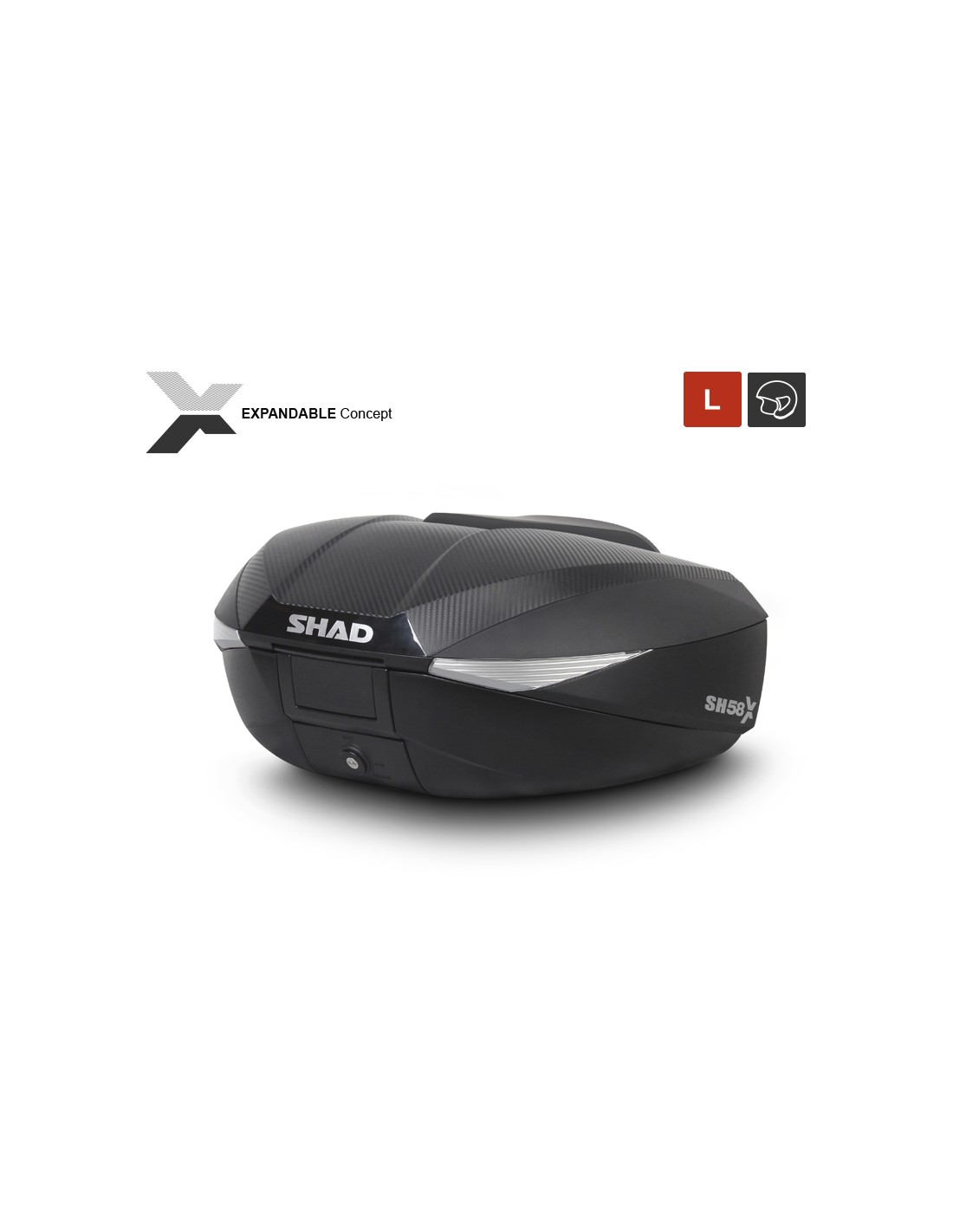 La nueva maleta Shad SH58X es tu maleta, ya que tiene un look carbono (la tapa en carbono viene incluida), a conjunto con las maletas laterales SH36 (venta por separado), que respira modernidad y sofisticación.