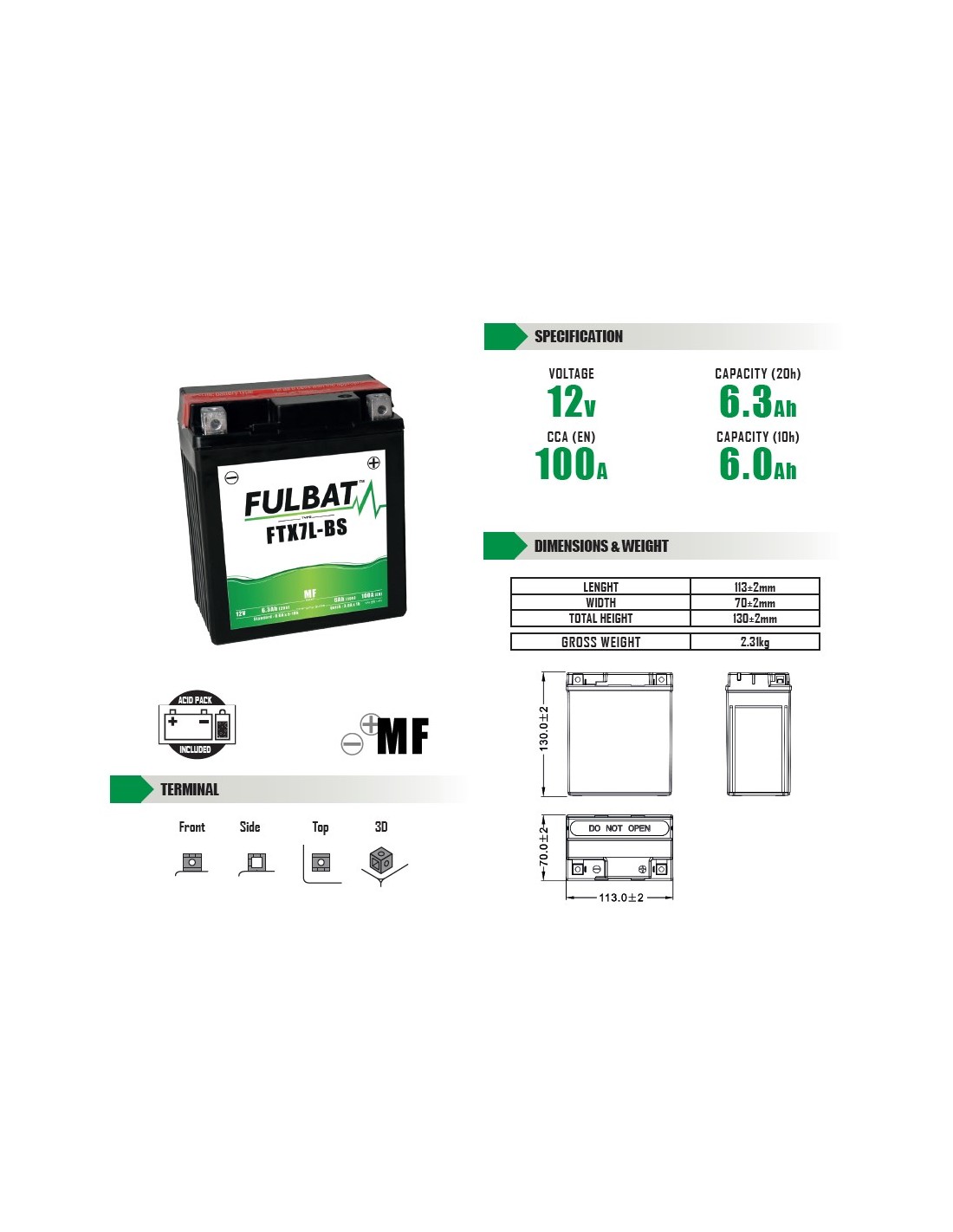 BATERIA FULBAT FTX7L-BS TECNOLOGIA  DE MF