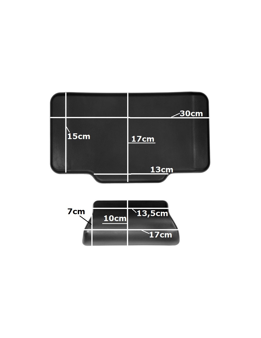 Dimensión aprox : 39.5 cm largo, 17 cm ancho  y 6 cm grosor según zonas, ya que no es algo cuadrado exacto.