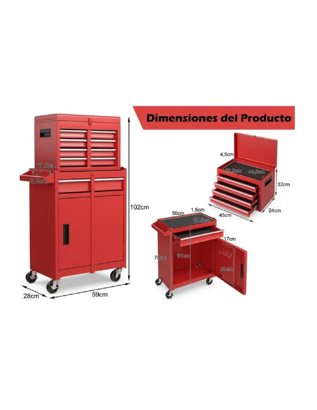 Adecuado para garaje, taller y cuarto de herramientas Especificaciones Técnicas:
