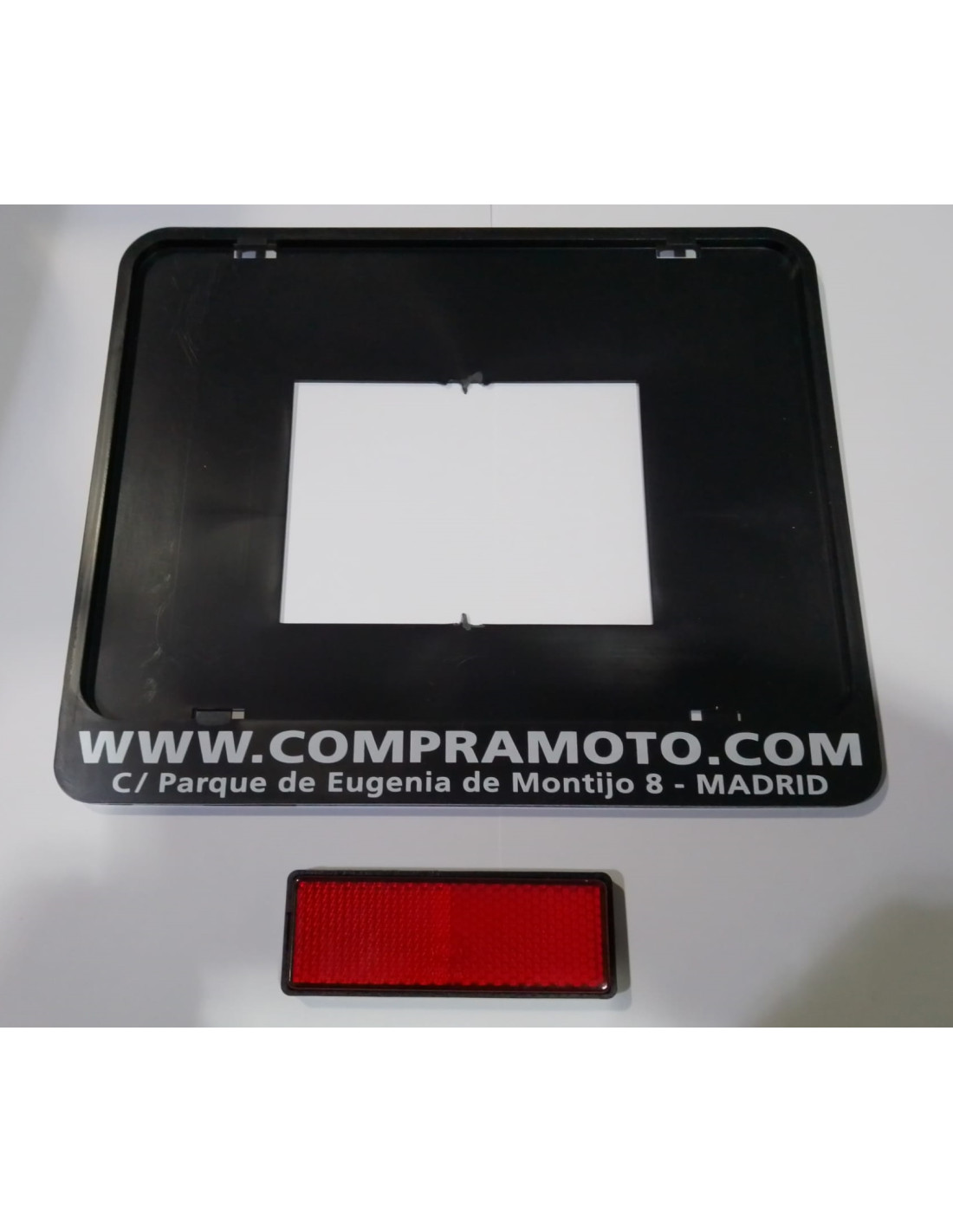 MARCO PORTAMATRICULAS MOTO COMPRAMOTO + CATADIOPTRICO ADHESIVO