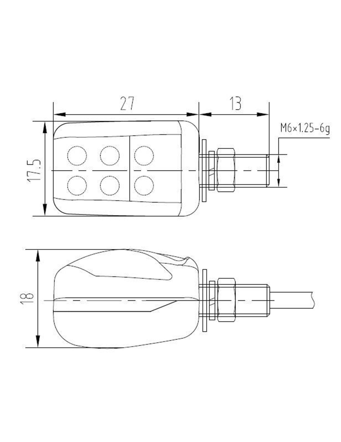 Juego de intermitentes de leds negro con el cristal transparente. Homologados. Medidas: 24x16mm. La mayoría de las motocicletas utilizan relés bimetálicos. Su frecuencia (que es la que marca el ritmo de los intermitentes), depende del amperaje que circula por el circuito. Al sustituir los intermitentes originales por otros de diferente potencia, variamos el amperaje que circula por el circuito y consecuentemente variamos la frecuencia de parpadeo de los intermitentes. Si por el contrario la motocicleta usara relés electrónicos (cuya frecuencia es independiente del amperaje que circula per el circuito) el cambio de intermitentes, no debería afectar la frecuencia de parpadeo. · Nota: ante la duda de que relé utiliza nuestra motocicleta, es aconsejable montar los intermitentes y comprobar la frecuencia de parpadeo.Si sustituimos los intermitentes originales por otros que también utilizan bombillas incandescentes, debemos comprobar que tengan la misma potencia.En caso de que varíe, deberemos sustituir las bombillas del intermitente por otras de la misma potencia que las originales. En nuestro catálogo disponemos de cajas de bombillas de diferentes potencias. Si sustituimos los intermitentes originales por otros de leds (de una potencia muy inferior a las bombillas incandescentes), tenemos dos opciones para equilibrar la frecuencia de parpadeo: 1. Incorporar una resistencia en paralelo en el circuito del lado derecho y otra en el circuito del lado izquierdo. Si sustituimos los cuatro intermitentes, deberemos usar la resistencia ref.4298O. Si por el contrario, solo sustituimos dos intermitentes (uno de cada lado) debermos usar la resistencia ref.5873O. Con las resitencias se suministra un esquema para su conexión en paralelo. · Nota: en la mayoría de modelos el empleo de resistencias impide el correcto funcionamiento del warning. 2. Identificar el relé de intermitencia de nuestra motocicleta (localización y número de pins) y sustituirlo por el correspondiente de la lista que ofrecemos.En la mayoría de motocicletas al cambiar el relé el warning funciona correctamente. · Nota: existen en el mercado algunas motocicletas que no tienen un relé de intermitencia específico, por lo cual es imposible sustituirlo. Asimismo, si en la maniobra de intermitencia, interviene más de un relé, es posible que la sustitución de un solo relé no solucione el problema.