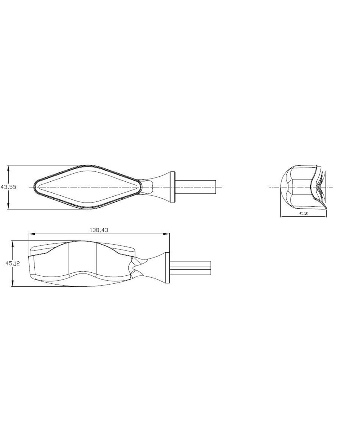 Juego de intermitentes de leds negro con el cristal transparente. Homologados. Medidas: 70x21mm. La mayoría de las motocicletas utilizan relés bimetálicos. Su frecuencia (que es la que marca el ritmo de los intermitentes), depende del amperaje que circula por el circuito. Al sustituir los intermitentes originales por otros de diferente potencia, variamos el amperaje que circula por el circuito y consecuentemente variamos la frecuencia de parpadeo de los intermitentes. Si por el contrario la motocicleta usara relés electrónicos (cuya frecuencia es independiente del amperaje que circula per el circuito) el cambio de intermitentes, no debería afectar la frecuencia de parpadeo. Nota: ante la duda de que relé utiliza nuestra motocicleta, es aconsejable montar los intermitentes y comprobar la frecuencia de parpadeo.Si sustituimos los intermitentes originales por otros que también utilizan bombillas incandescentes, debemos comprobar que tengan la misma potencia.En caso de que varíe, deberemos sustituir las bombillas del intermitente por otras de la misma potencia que las originales. En nuestro catálogo disponemos de cajas de bombillas de diferentes potencias. Si sustituimos los intermitentes originales por otros de leds (de una potencia muy inferior a las bombillas incandescentes), tenemos dos opciones para equilibrar la frecuencia de parpadeo: 1. Incorporar una resistencia en paralelo en el circuito del lado derecho y otra en el circuito del lado izquierdo. Si sustituimos los cuatro intermitentes, deberemos usar la resistencia ref.4298O. Si por el contrario, solo sustituimos dos intermitentes (uno de cada lado) debermos usar la resistencia ref.5873O. Con las resitencias se suministra un esquema para su conexión en paralelo. Nota: en la mayoría de modelos el empleo de resistencias impide el correcto funcionamiento del warning. 2. Identificar el relé de intermitencia de nuestra motocicleta (localización y número de pins) y sustituirlo por el correspondiente de la lista que ofrecemos.En la mayoría de motocicletas al cambiar el relé el warning funciona correctamente. Nota: existen en el mercado algunas motocicletas que no tienen un relé de intermitencia específico, por lo cual es imposible sustituirlo. Asi mismo, si en la maniobra de intermitencia, interviene más de un relé, es posible que la sustitución de un solo relé no solucione el problema.