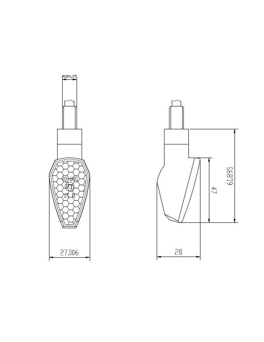 Juego de intermitentes brazo corto negro cristal transparente de leds 65x27 mm. Rosca M10x1.25.