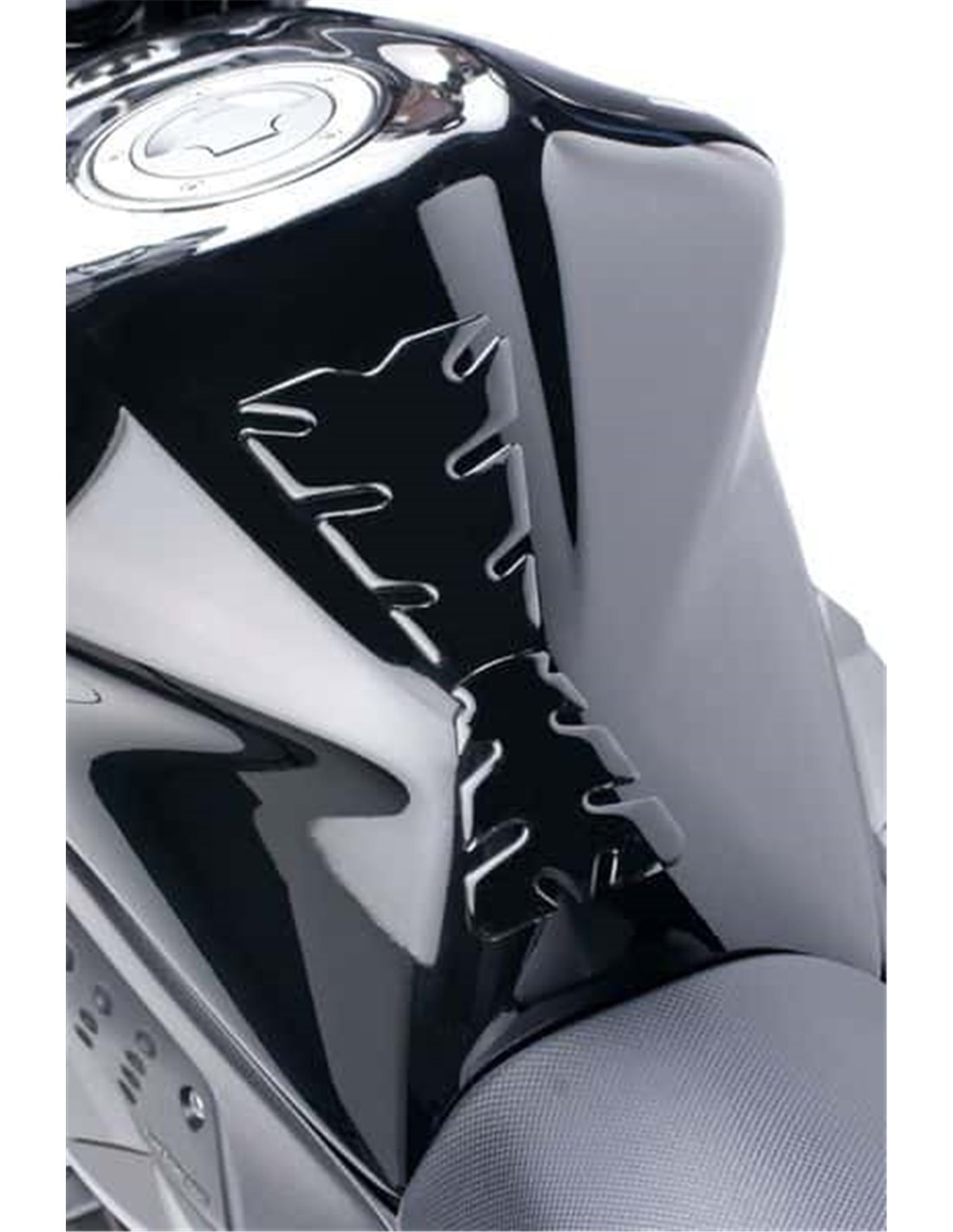 Protector de depósito con una forma que se adapta a la mayoría de depósito de motocicleta.